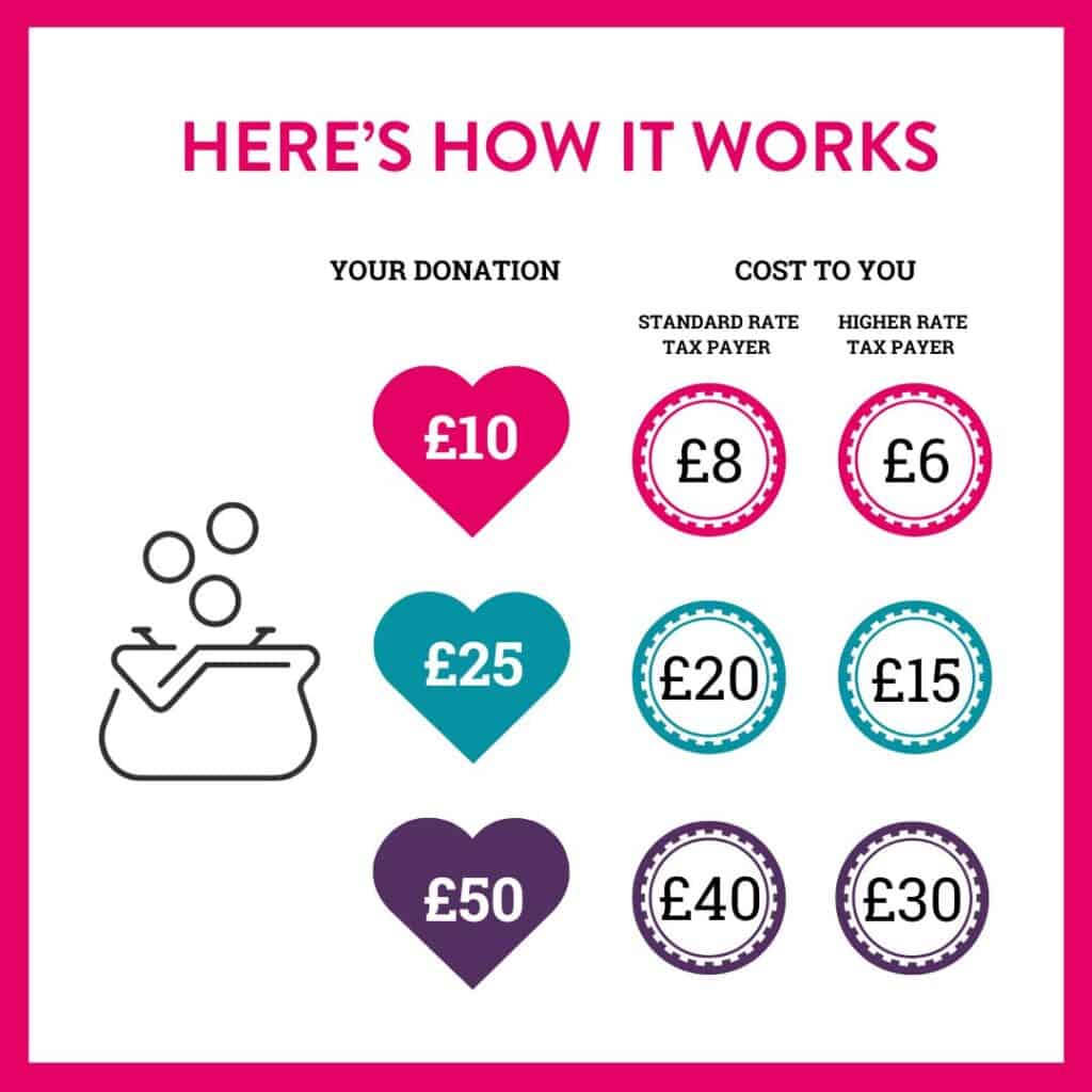 Payroll Giving is donating straight from your pay without having to think about it. It’s cost-effective because HMRC tops up your donation with the money that would otherwise have been tax, so you pay less but give more.