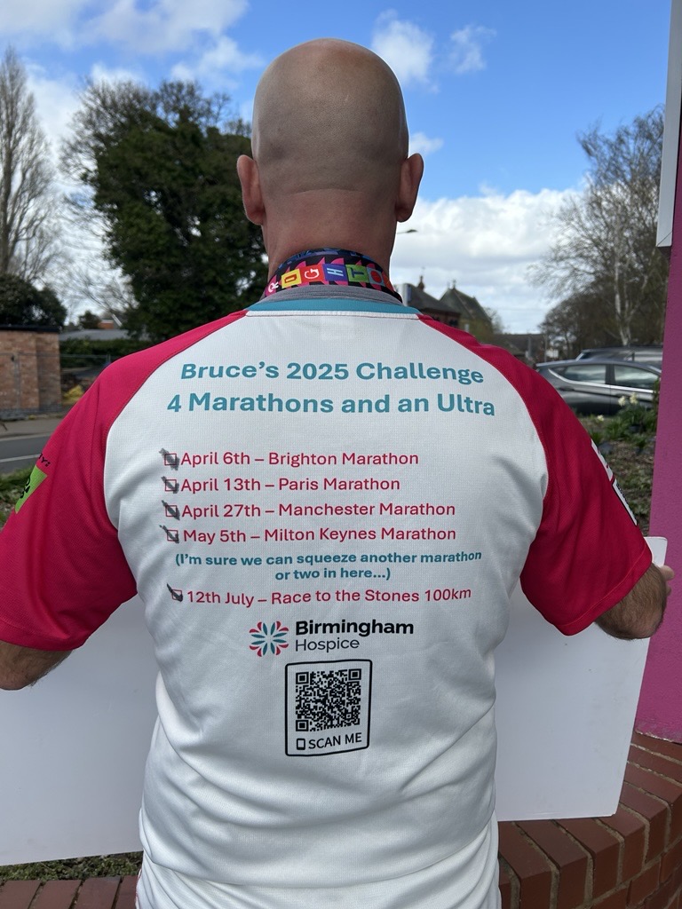 Our amazing supporter Bruce Hampton has raised an incredible £3,266, having taken on a challenging ‘Four Marathons and an Ultra’ fundraiser for Birmingham Hospice.